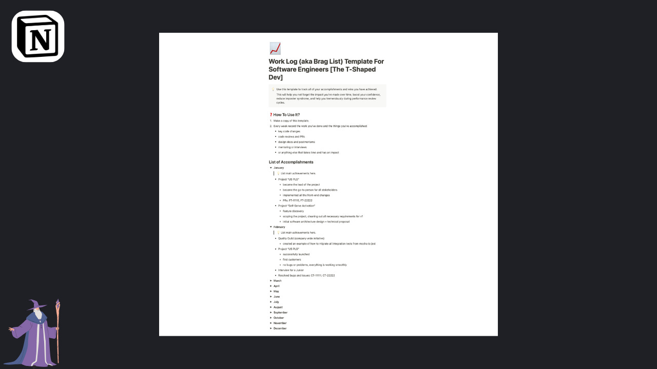 š Notion Template: Work Log (aka Brag List) Template For Software Engineers