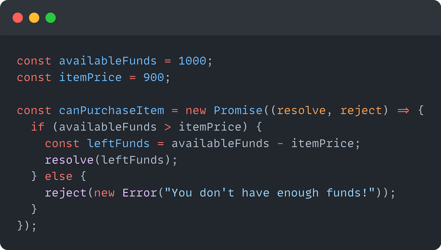 Upon creation, the Promise takes a function that will be passed two arguments - a resolution callback and a rejection callback.